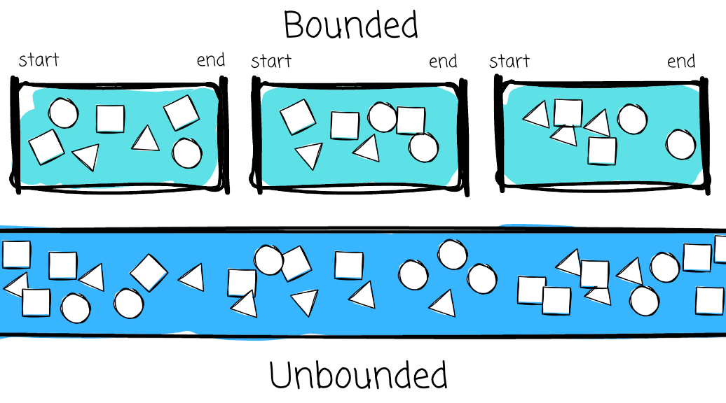 Let’s take a look around and think about it. Most of the data we work with doesn’t have a natural boundary; in other words, it is unbounded: from the user interaction on the website (unless the website is down) to data from IoT sensors (unless the sensor runs out of power).