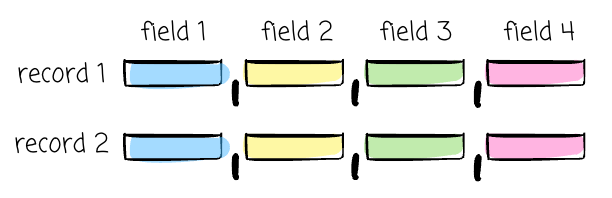 Each line in a file represents a data record or row. The values within that record are separated by a delimiter, which is typically a comma. Every line should have the same fields. (The exact number of commas.).