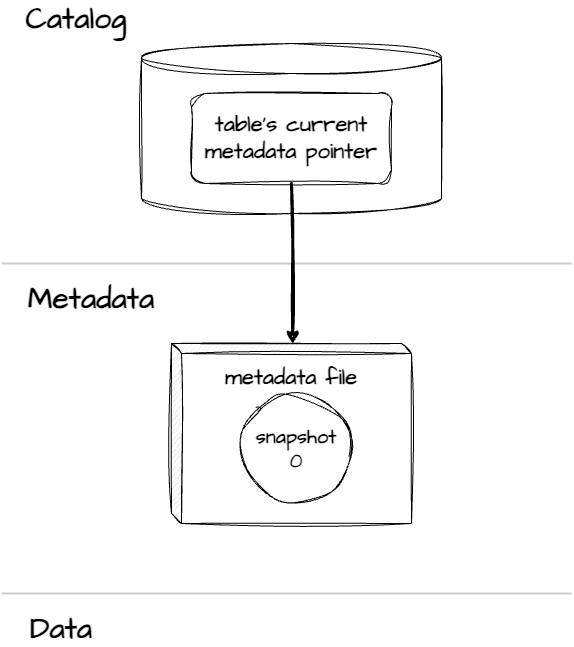 The catalog is where every Iceberg data operation begins. It guides you on where to go first. The catalog will point you to the current metadata pointer's location. Iceberg catalog is required to support atomic operations when updating the pointer, which ensures that all readers and writers see the same table state at any moment.