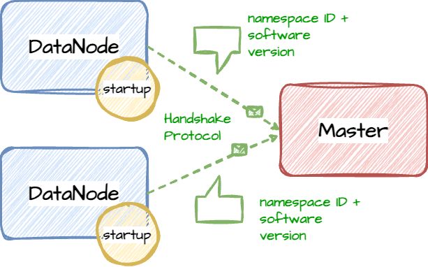 The namespace ID is assigned to the file system instance and persisted on all the cluster’s nodes. Nodes with a different namespace ID can’t join the cluster, thus protecting the file system’s integrity. Incompatible software versions may cause data corruption or loss; the handshake protocol ensures shutting down nodes that were not available during the upgrade.