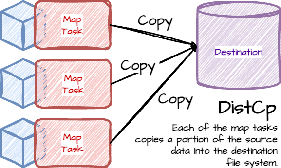 HDFS provides a DistCp tool for large inter/intra-cluster parallel copying. Under the hood is a MapReduce job; each map task copies a set of the source data into the destination. The MapReduce framework handles the parallel task scheduling, error detection, and recovery of the copy job.
