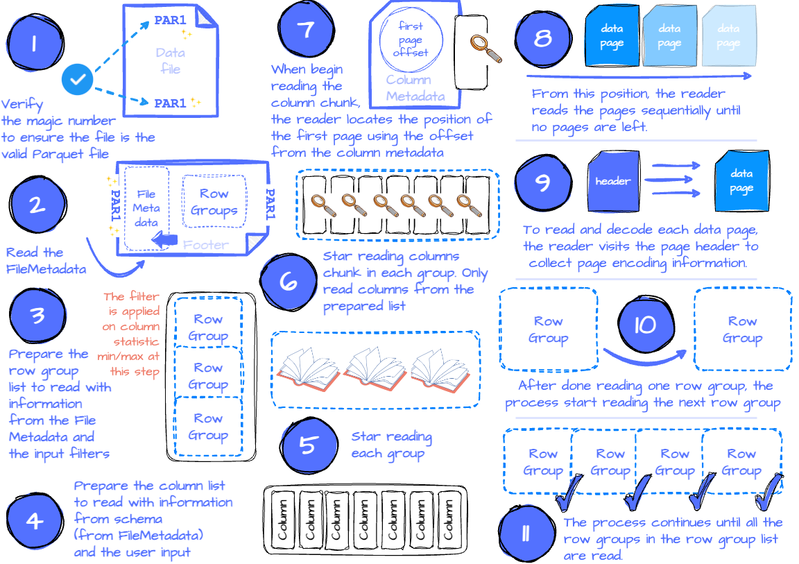 In the following section, I will deliver my understanding of the process of Parquet writing and reading data.