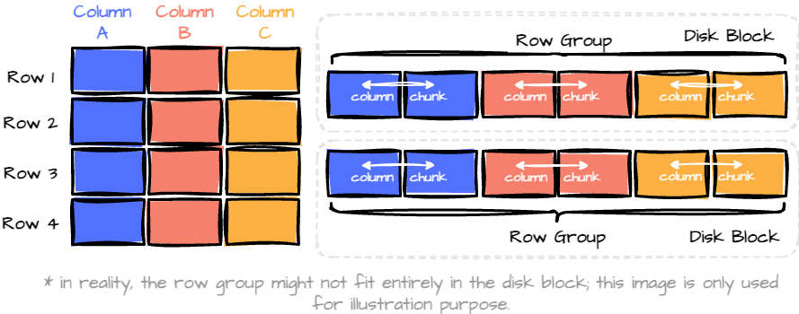 In the past, I thought Parquet was purely a columnar format, and I’m sure many of you might think the same. To describe it more precisely, Parquet organizes data in a hybrid format behind the scenes.