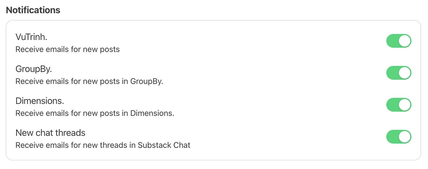 Toggle ON or OFF to choose which newsletter you would like to receive emails from.
