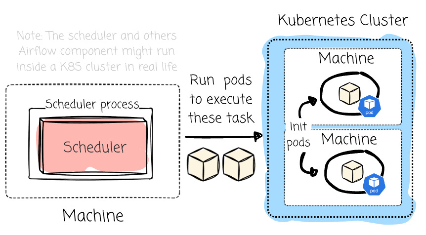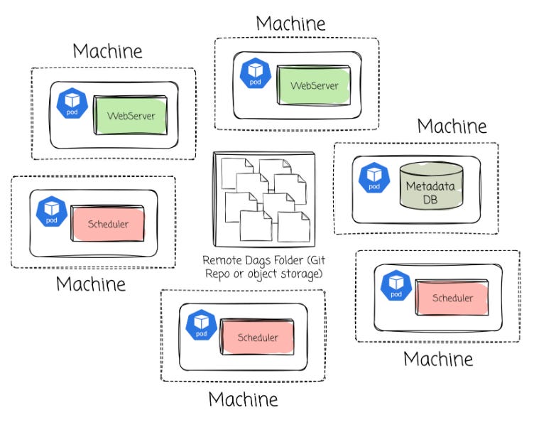 This setup enables better load distribution, making it well-suited for handling large-scale workflows. The most common approach for deploying Airflow's distributed architecture that I observed is using Kubernetes.