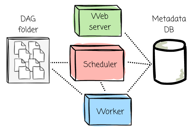 Scheduler: The component responsible for parsing DAG files, scheduling tasks, and queuing them for execution based on their dependencies and schedules. The executor logic runs inside the scheduler.