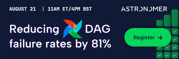 This article is sponsored by Astronomer. At Astronomer, a team of just five data engineers manages 27,000 daily tasks powering 18+ data products. After a series of architectural changes, they reduced DAG failure rates by 81%. On August 21, they’re sharing exactly how they did it, and how you can apply the same strategies to make your own pipelines more reliable. You’ll learn how to: