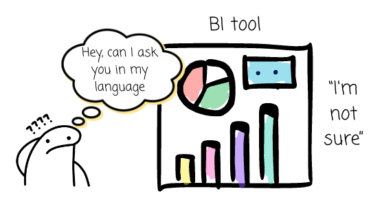 Let’s confess here, it is tough for us to do the right thing the first time with this data system. We might run around the companies to ask for more clarification, cause some bugs, and create some weird reports before learning how to do it right. An AI model, somewhere on the internet, knows nothing about your company’s data system. How could we expect it to do better than us?