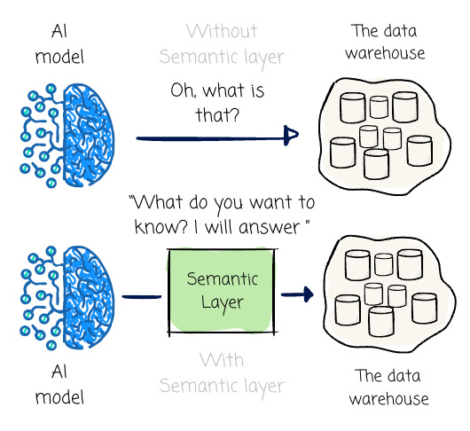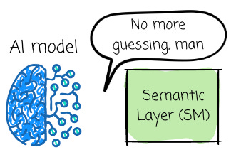 AI models don’t need to understand the database complexity anymore, as all the information they require is baked into the semantic layer, from the tables needed to the right way to join them. In other words, an AI model is enriched with context through the semantic layer.