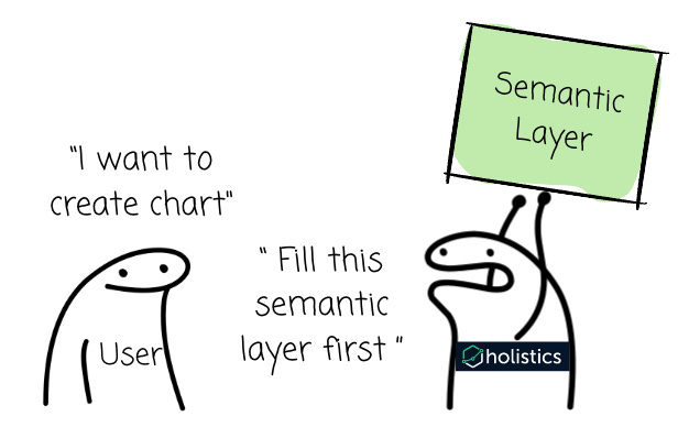 The semantic layer has emerged lately, given its ability to abstract the complexity of the underlying data systems. As discussed, this is not only a benefit to business users but also to the AI models. The layer is an indispensable part of modern BI tools, such as Tableau, Looker, and Power BI, as well as an interesting solution called Holistics.
