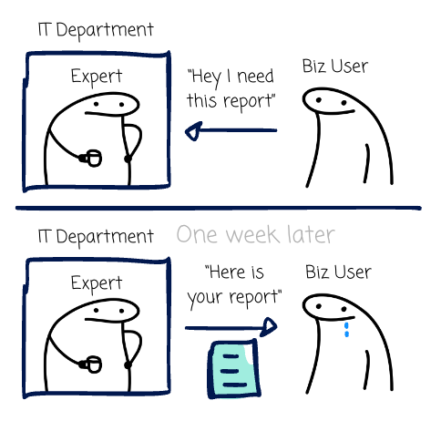 In the past, if business users wanted to gain insight from the data, they had to communicate with the IT department so that these technical experts could assist them.